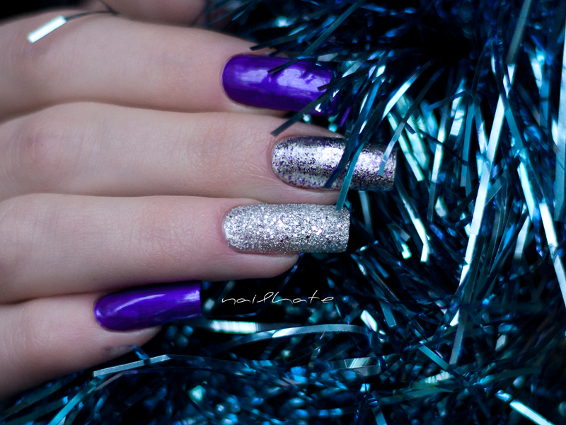 А вот вам практически тоже самое(ну, если закрыть глаза на то, что серебро здесь мельче и поэтому сияние не столь яркое) и блестки обожаемого фиолетового цвета